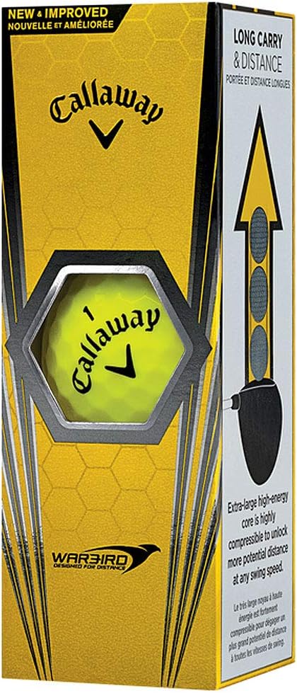 Unleash your inner golf pro with Callaway Warbird Golf Balls, engineered for incredible speed and distance off every club. Featuring an extra-large, high-energy core, these balls are super compressible to help you unlock your full potential on the course. HEX Aerodynamics reduce drag, promoting higher launch and a more consistent, longer flight path. Experience supreme feel and greenside control thanks to the optimized ionomer cover and two-piece design.