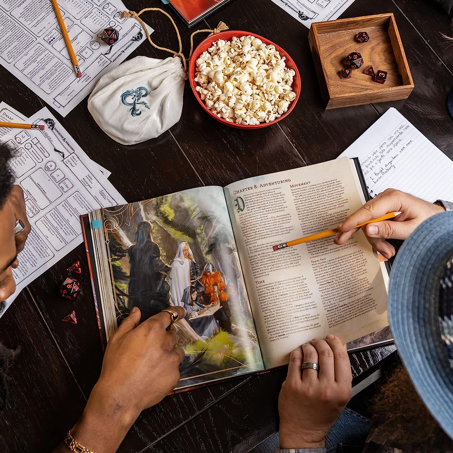 - 1 of 3 D&D Core Rulebooks—the Player’s Handbook (rules for playing the game), the Dungeon Master’s Guide (how to run the game), and Monster Manual (creatures to encounter in your game)