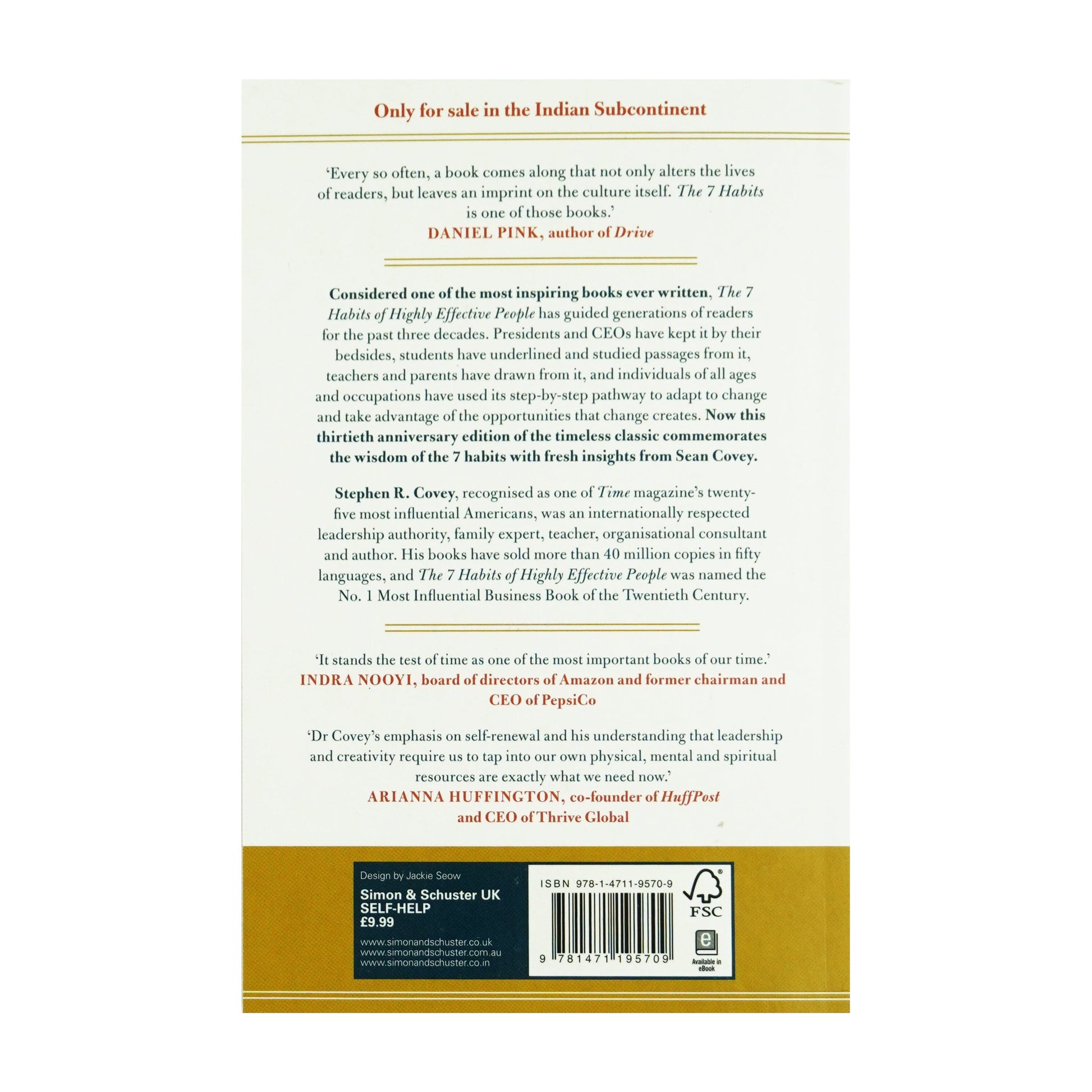 Stephen R. Covey, recognised as one of Time magazine's twenty-five most influential Americans, was an internationally respected leadership authority, family expert, teacher, organisational consultant and author. His books have sold more than 40 million copies in fifty languages, and The 7 Habits of Highly Effective People was named the No. 1 Most Influential Business Book of the Twentieth Century.